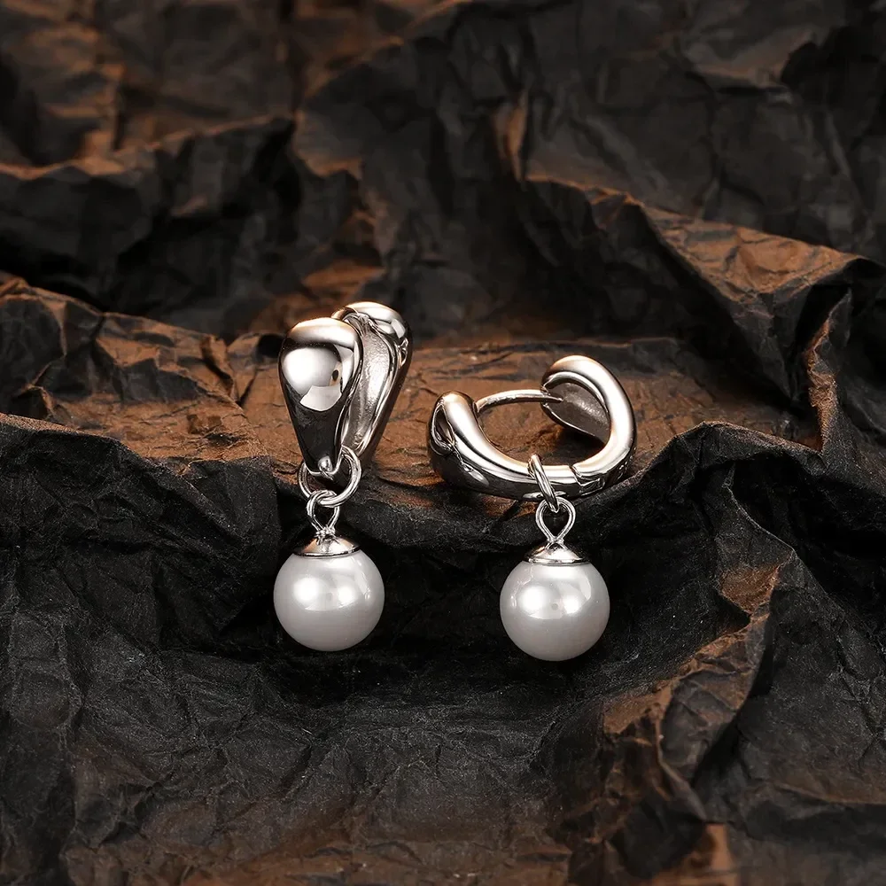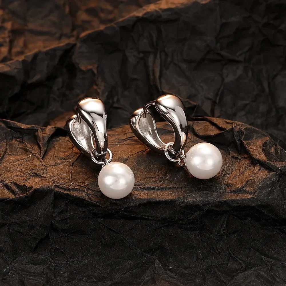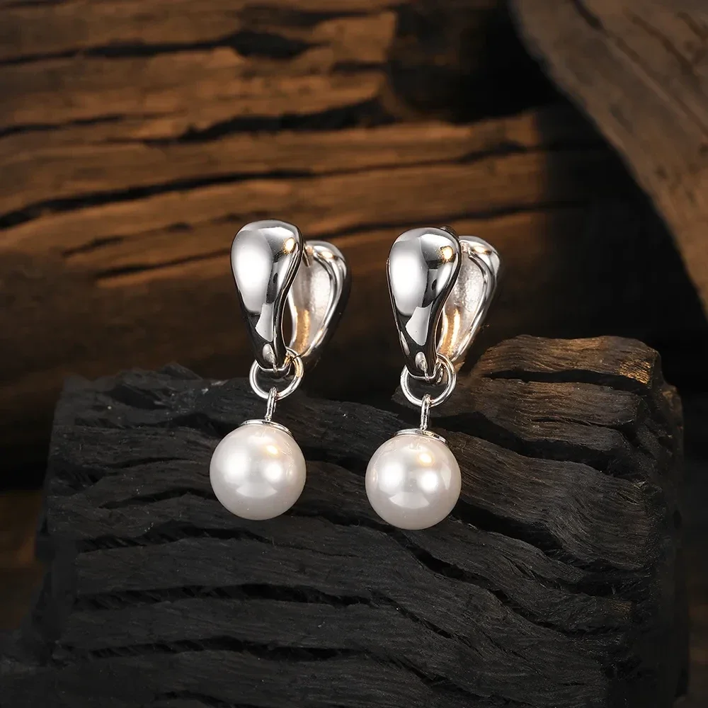 Orecchini placcati in oro bianco 24 carati "Conchiglia" in argento 925 e perla
