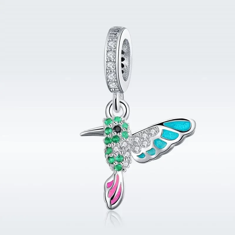 Charm con zirconi intarsiati in argento sterling con motivo "Beija Flor"