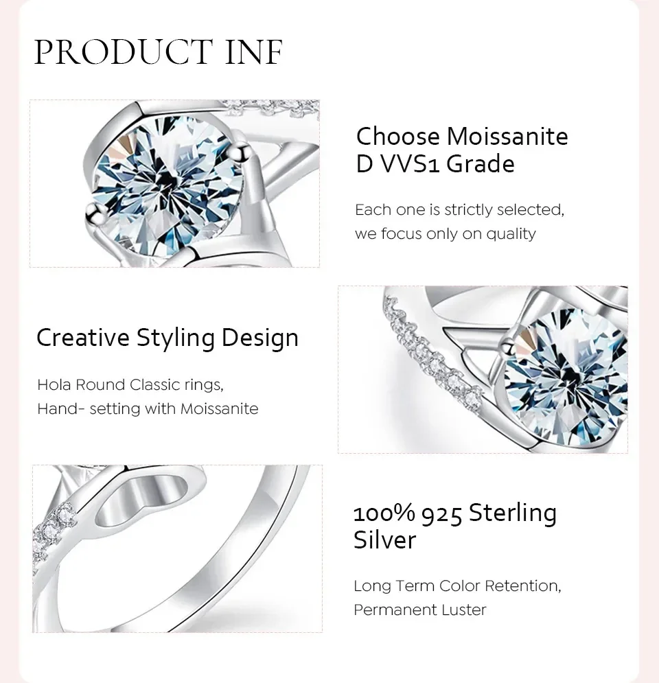 Anello "Moissanite" da 1 carato in argento 925 "Dolce"