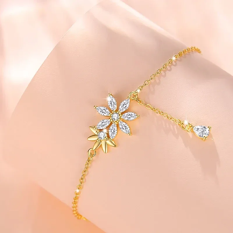 Braccialetto con zirconi e argento 925 con catenina placcato in oro 18 carati