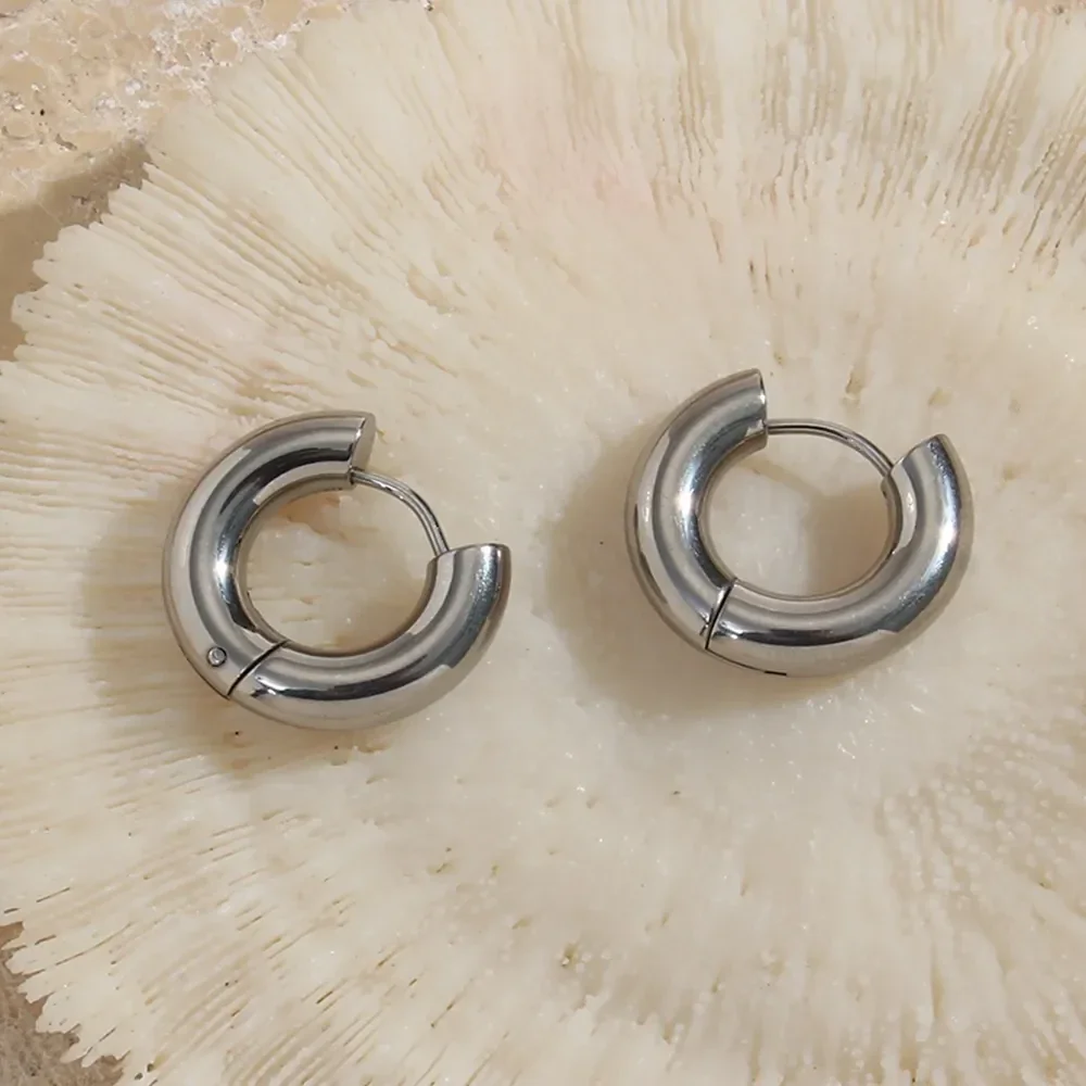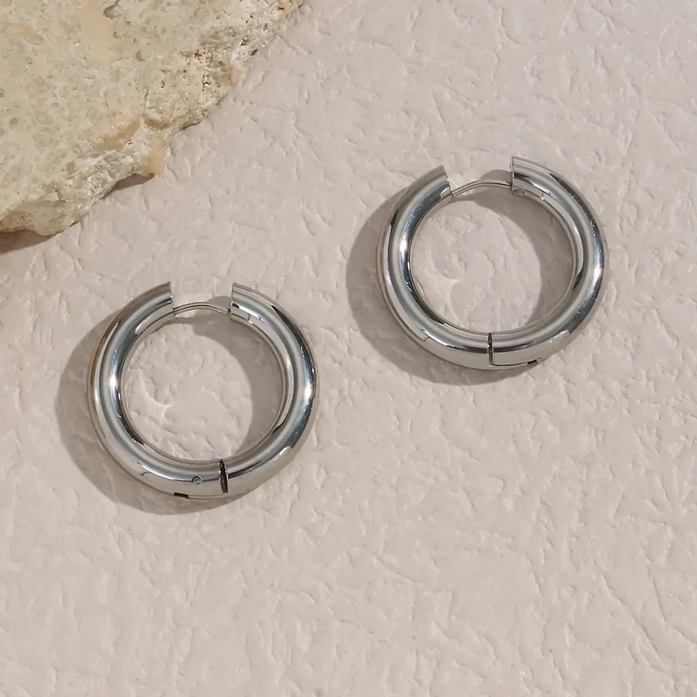 Orecchini a cerchio placcati in oro 18 carati in acciaio inossidabile con placcatura in argento