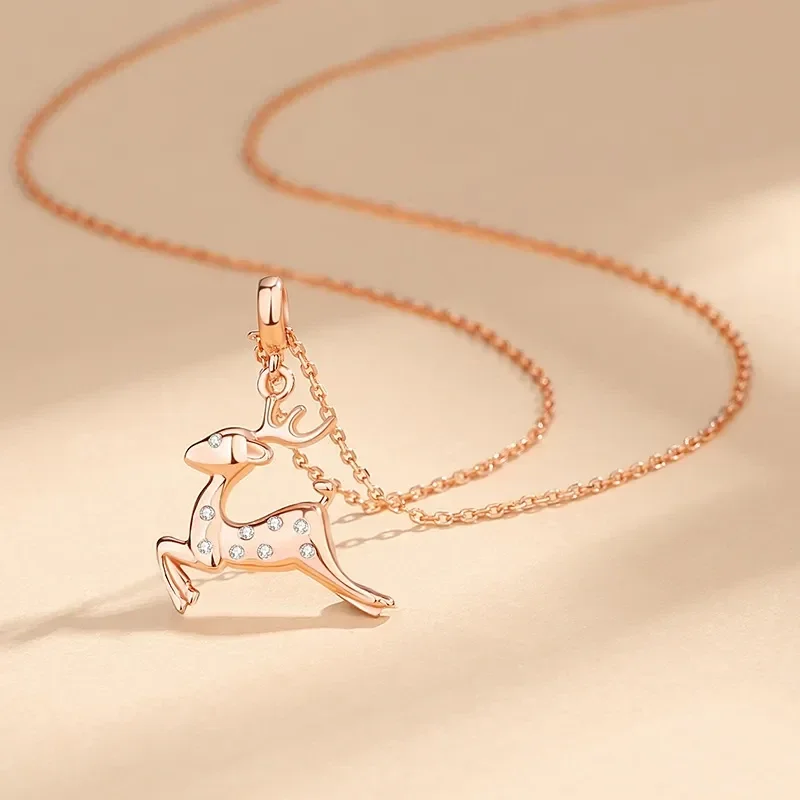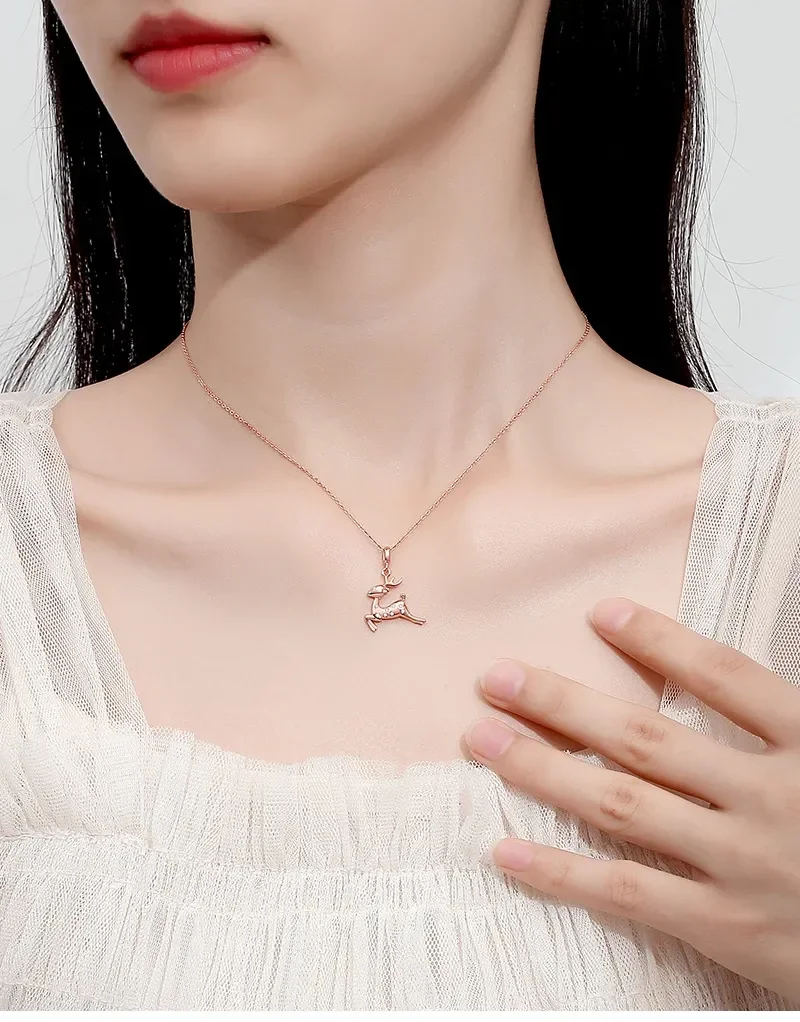 Collana con ciondolo in argento 925 placcato in oro rosa e zirconi "Cervo"