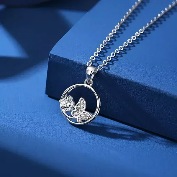 Collana con ciondolo "Farfalla" in Moissanite da 1 carato e argento sterling 925