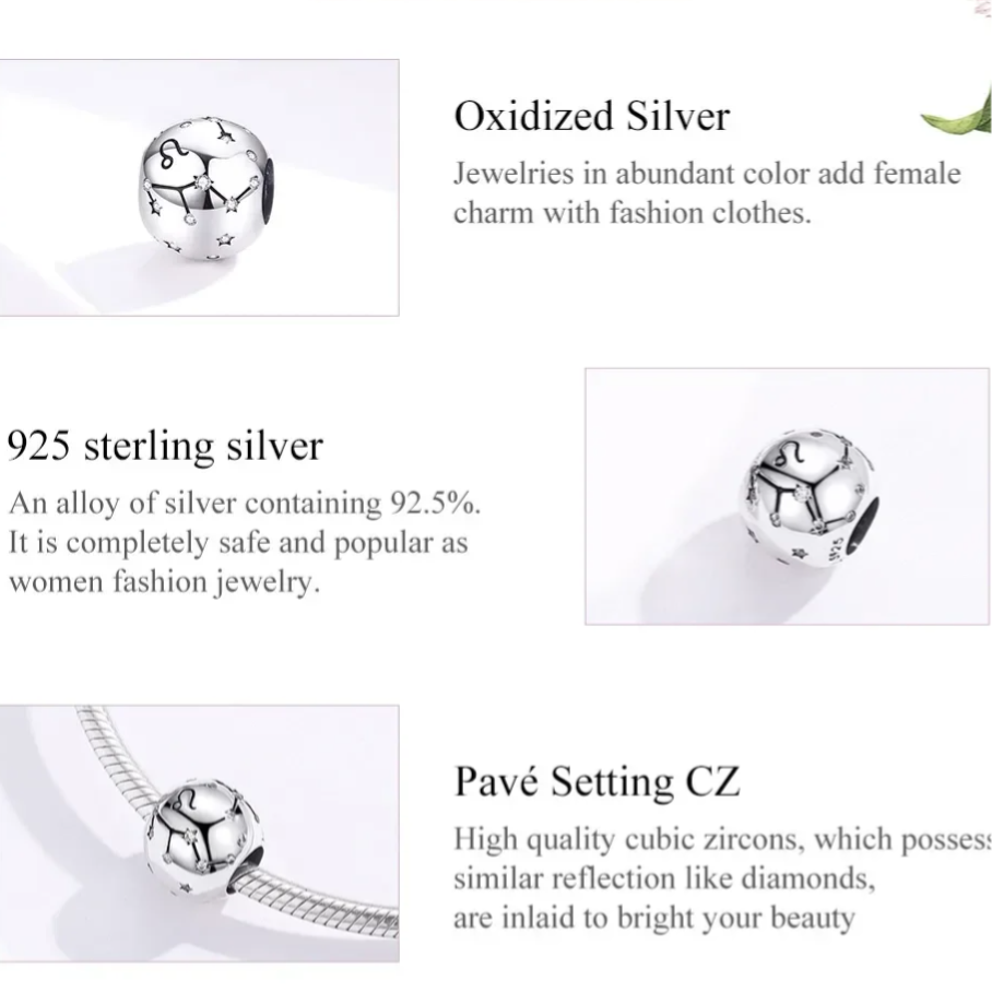 Charm con zirconi e argento sterling 925 "Leo"